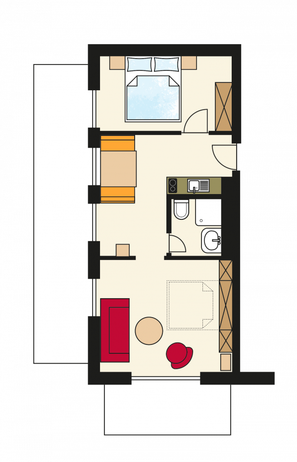 - getrennter Wohn-/Schlafraum